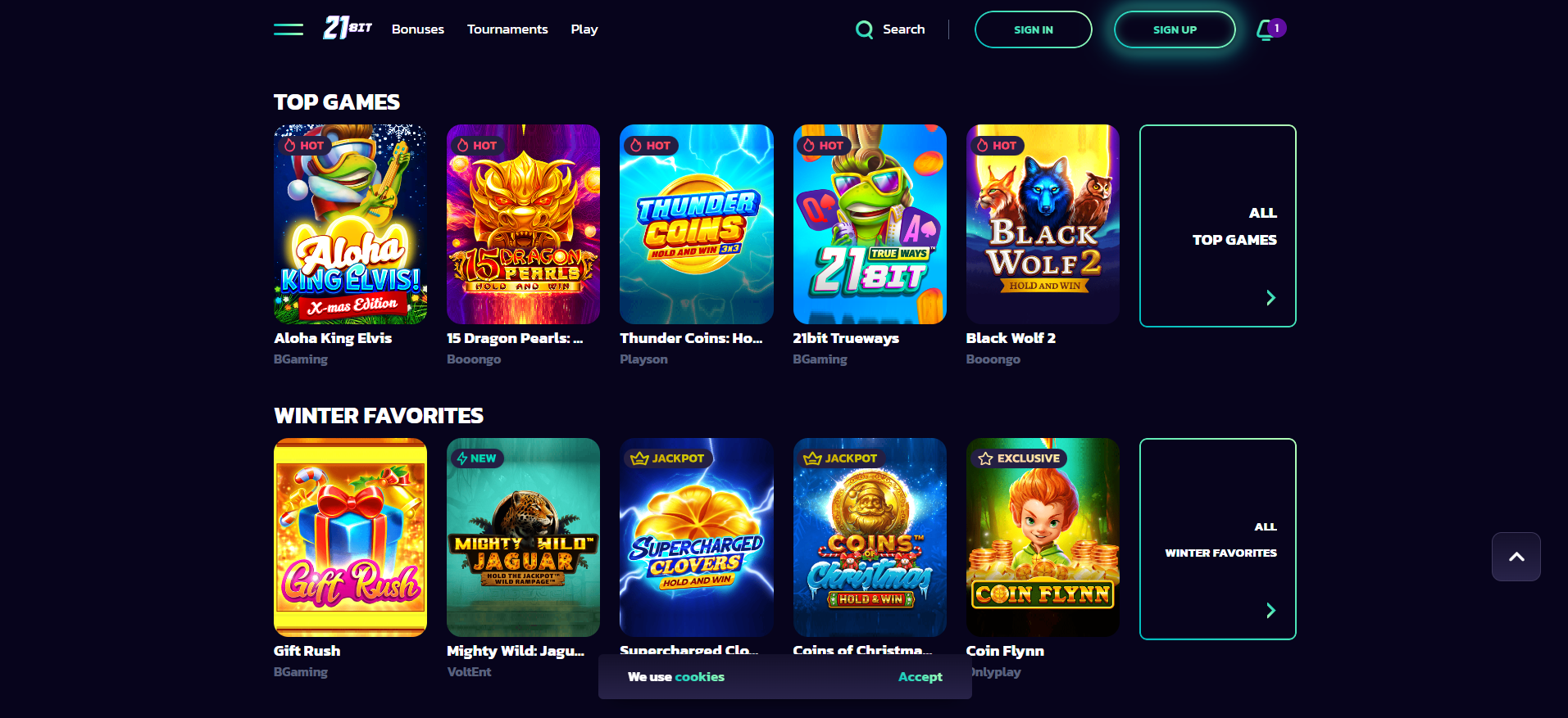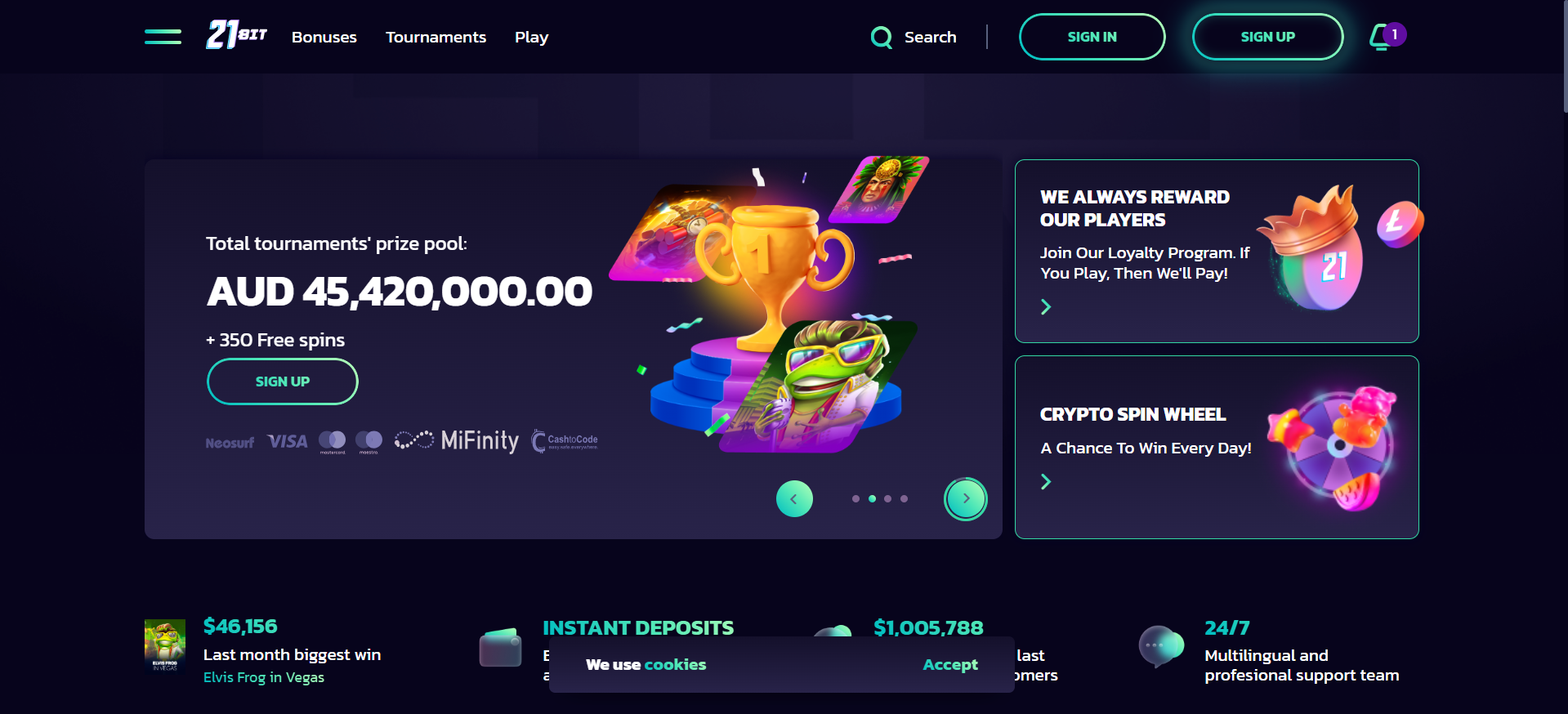 21Bit Casino has a wide range of offers for both new and returning customers. Some of these bonuses are a big welcome gift, rewards for high rollers, cashback options, and ongoing promotions. The casino also has a VIP program and rewards for players who come back often.