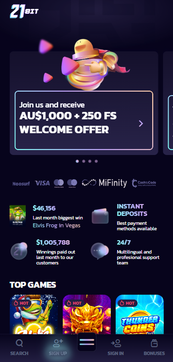 21Bit Casino really knows how to make mobile games fun. The platform still works and looks good on smaller screens, whether you use a specific app or a mobile browser to access it.
