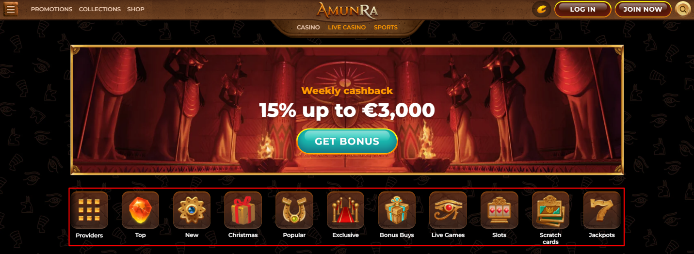 User Interface Features. AmunRa Casino has a very user-friendly interface. Its site layout is quite intuitive, allowing players to filter and find games easily based on their preferences. The customization options make the user experience better; you can set up the site according to the mode you are in for gaming.