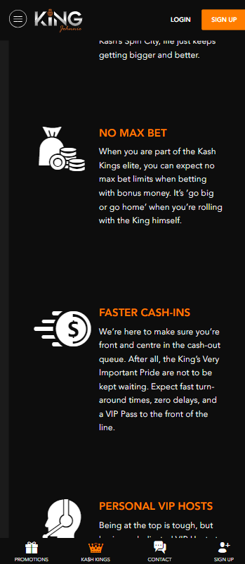 VIP Perks: The VIP program Kash Kings offers such privileges as no maximum bets, personal VIP hosts, and priority withdrawal.