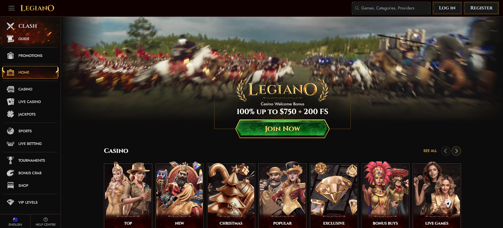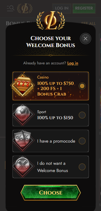 The welcome bonus at Legiano Casino is designed to give new players a strong start. It includes a 100% match bonus up to $750, 200 free spins, and an additional reward of 1 Bonus Crab. Here’s how the welcome package is structured: