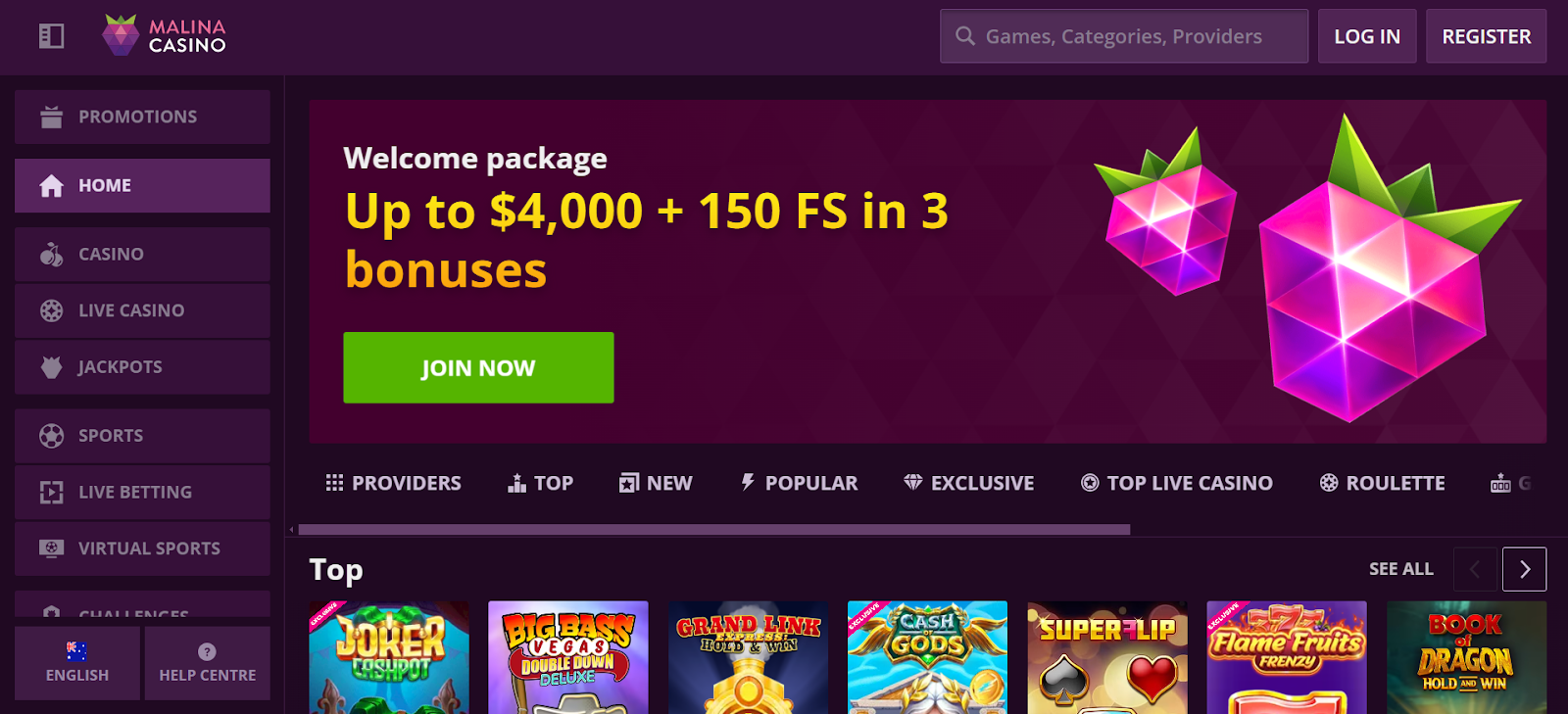 MalinaCasino offers a wide range of top-performing slots, many of which come from well-known game providers. Here are some of the most popular titles available: