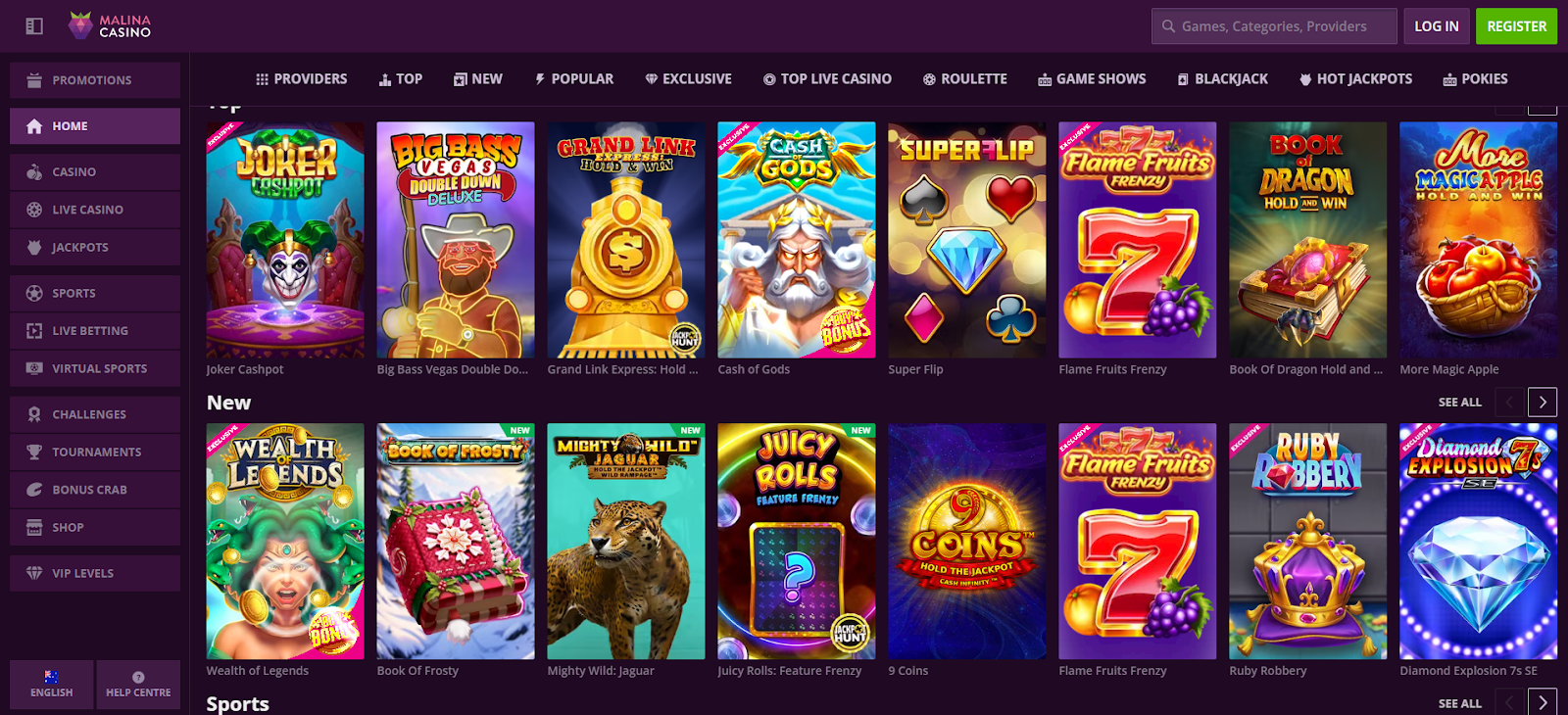 For casual gamers looking for aesthetically pleasing games, high rollers searching for rewarding VIP programs, and cryptocurrency fanatics appreciating the ease of crypto payments, Malina Casino is perfect.