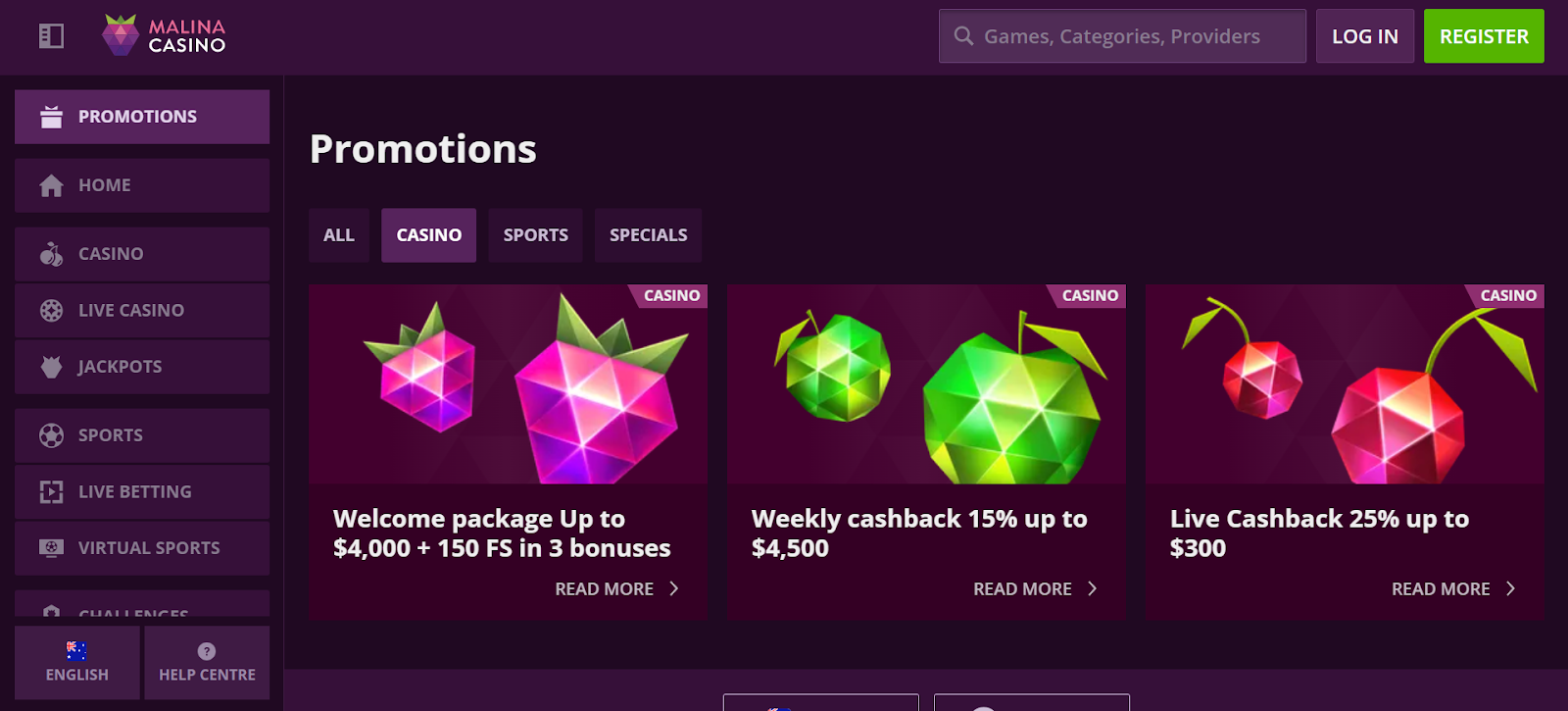 Australia Malina Casino Bonuses and Promotions
