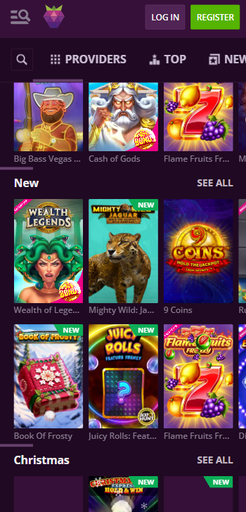 The platform has a modern look with soft purple colors and crisp images. Its user experience is improved by its flawless navigation, well labeled menus, organized game collection, search capability, and provider-based filter options. The classified search selections on the platform allow fast access to desired games and promos.
