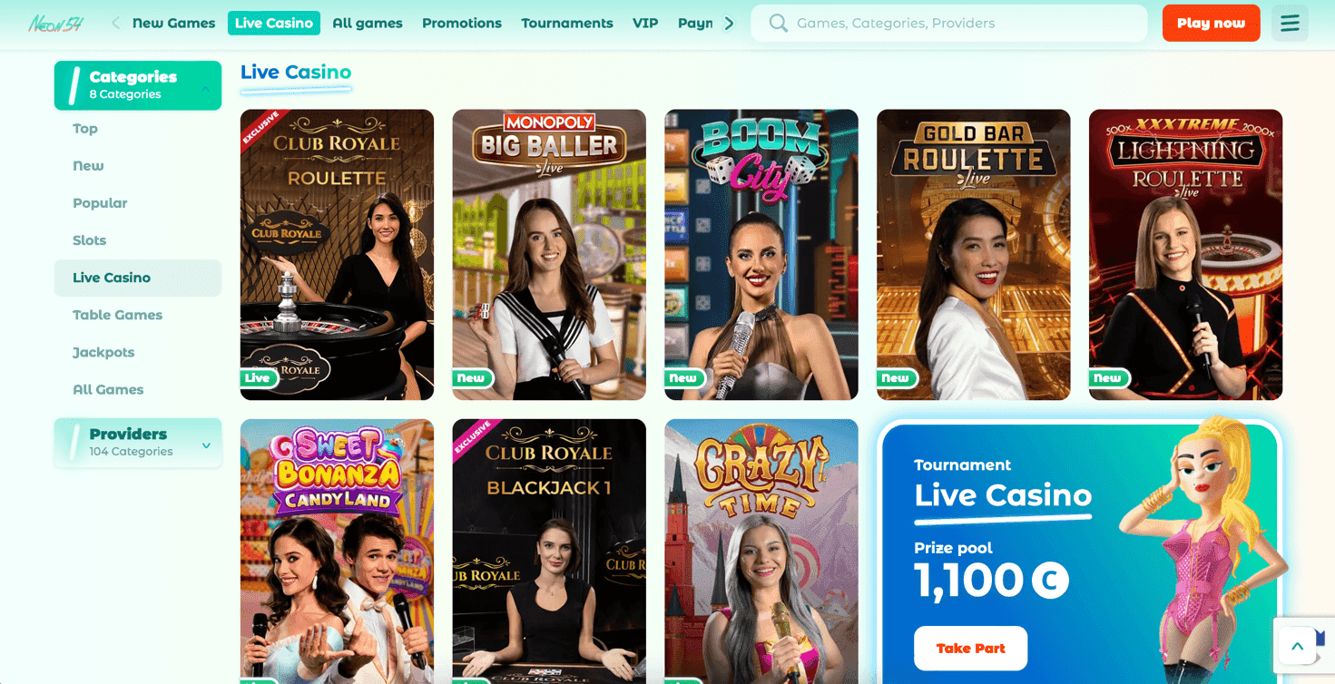 Through its partnerships with some of the best industry names—Evolution Gaming and Pragmatic Play, among others—Neon54 ensures high-quality streaming for live games that are fully immersive and realistic. Players can thus have live versions of blackjack, roulette, and baccarat served to them on a platter of professionally dealt hands.