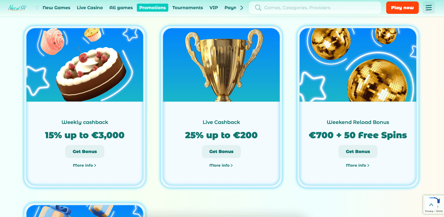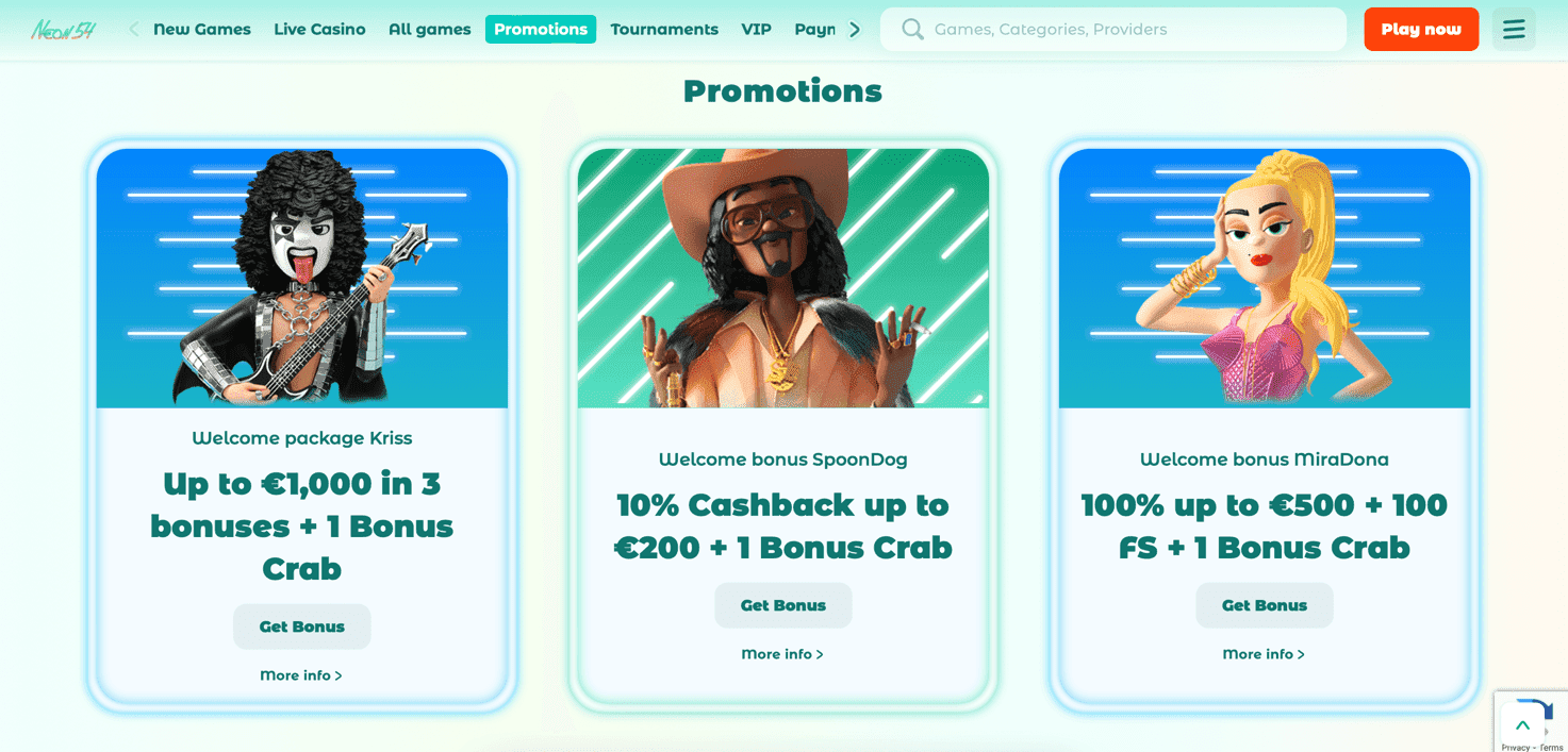 Through its welcome bonuses, promotions, and loyalty program suite, Neon54 Casino guarantees that players have many opportunities to increase their bankroll and maximize their gameplay.