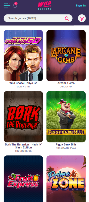 Wild Fortune Casino has a rich choice of games from the best software providers: slots, table games, live games, video poker and more.