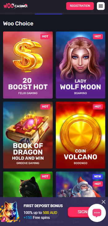 Woo Casino has recently become the most visited online gaming website since its opening in 2020. Owned by Direx N.V., the casino offers an extensive range of games for players, including classic table games, live dealer games, and slot machines. Its simple look, interaction on mobile devices, and large bonus promise a gaming experience of exceptional quality for every kind of player in Australia.