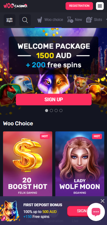 There is no special welcome bonus promotion focused on Highroller players at Woo casino online.